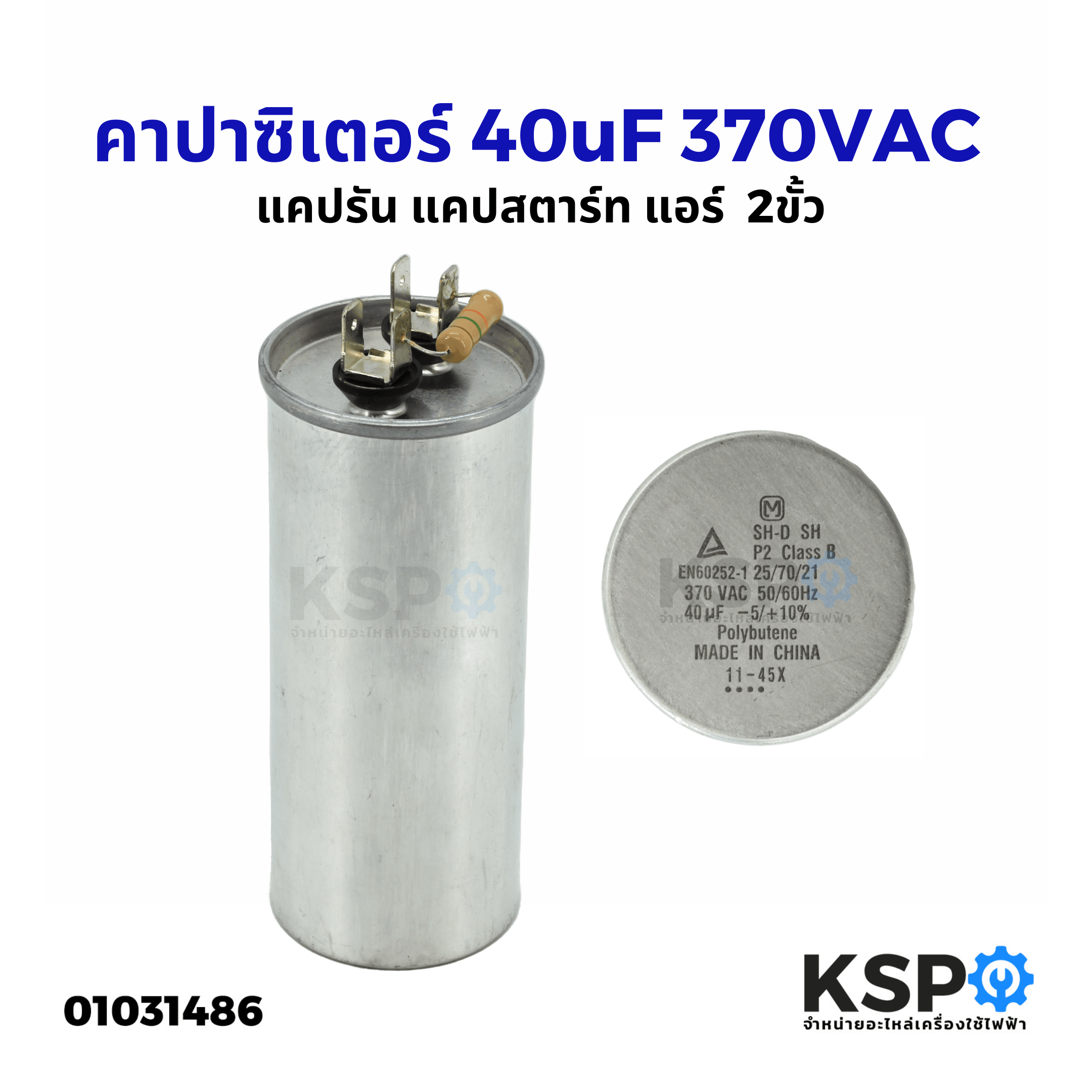 คาปาซิเตอร์ แคปรัน แคปสตาร์ท แอร์ 40uF 370VAC 50/60Hz AC 2ขั้ว (ใช้ได้กับแอร์ทุกยี่ห้อ) อะไหล่แอร์