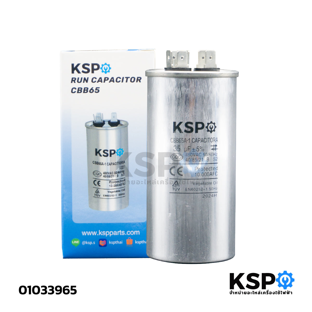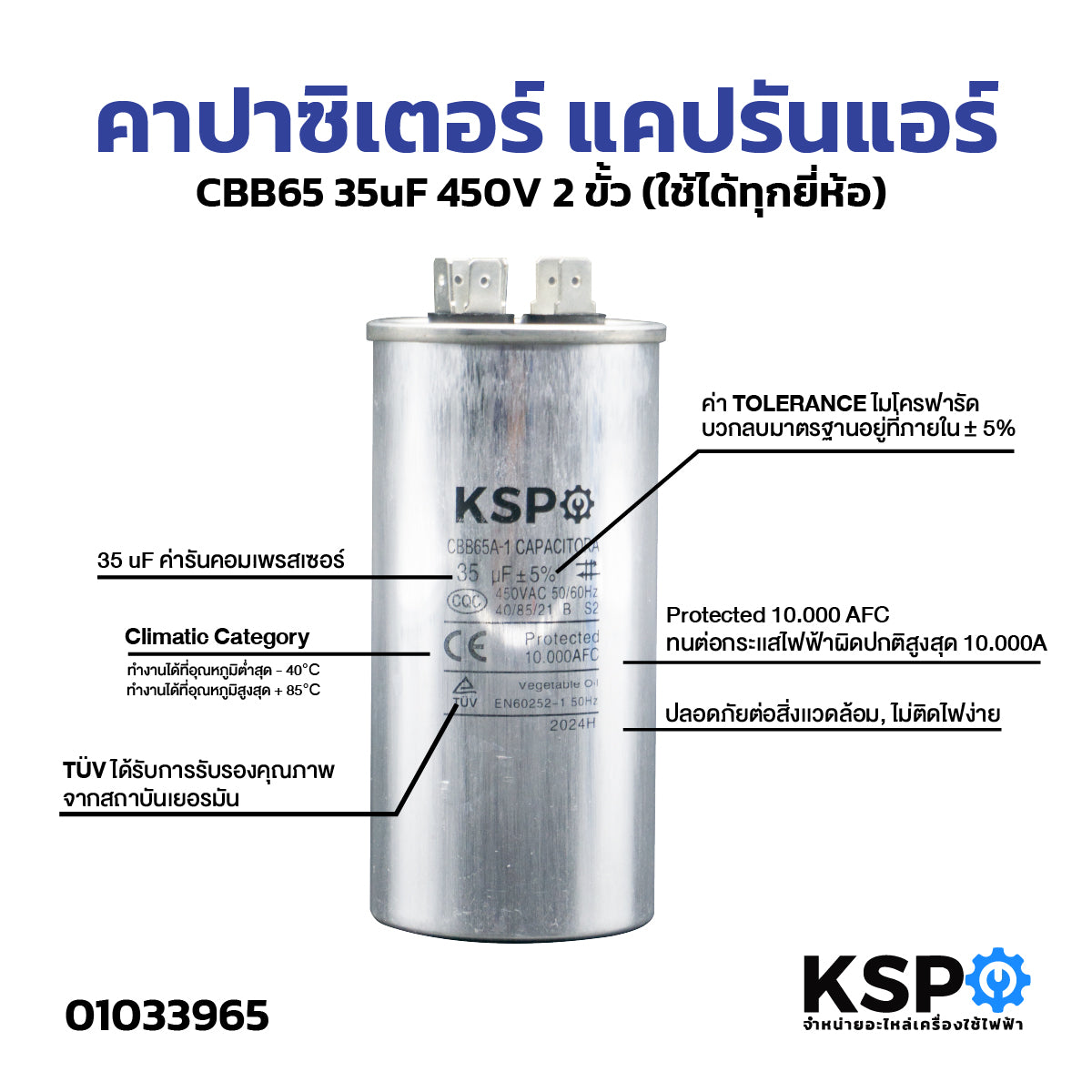 คาปาซิเตอร์ แคปรันแอร์ CBB65 35uF 450V 2ขั้ว (ใช้ได้ทุกยี่ห้อ) คาปาซิเตอร์แอร์ แคปสตาร์ทแอร์ อะไหล่แอร์