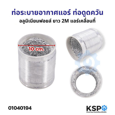 ท่อระบายอากาศแอร์ ท่อลมร้อนแอร์ ท่อดูดควัน อลูมิเนียมฟอยล์ กว้าง 10cm ยาว 2M แอร์เคลื่อนที่ อะไหล่แอร์