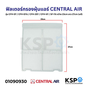 ฟิลเตอร์กรองฝุ่นแอร์ ฟิลเตอร์แอร์ แผ่นกรองฝุ่นแอร์ CENTRAL AIR กว้าง 23cm ยาว 27cm (แท้) อะไหล่แอร์