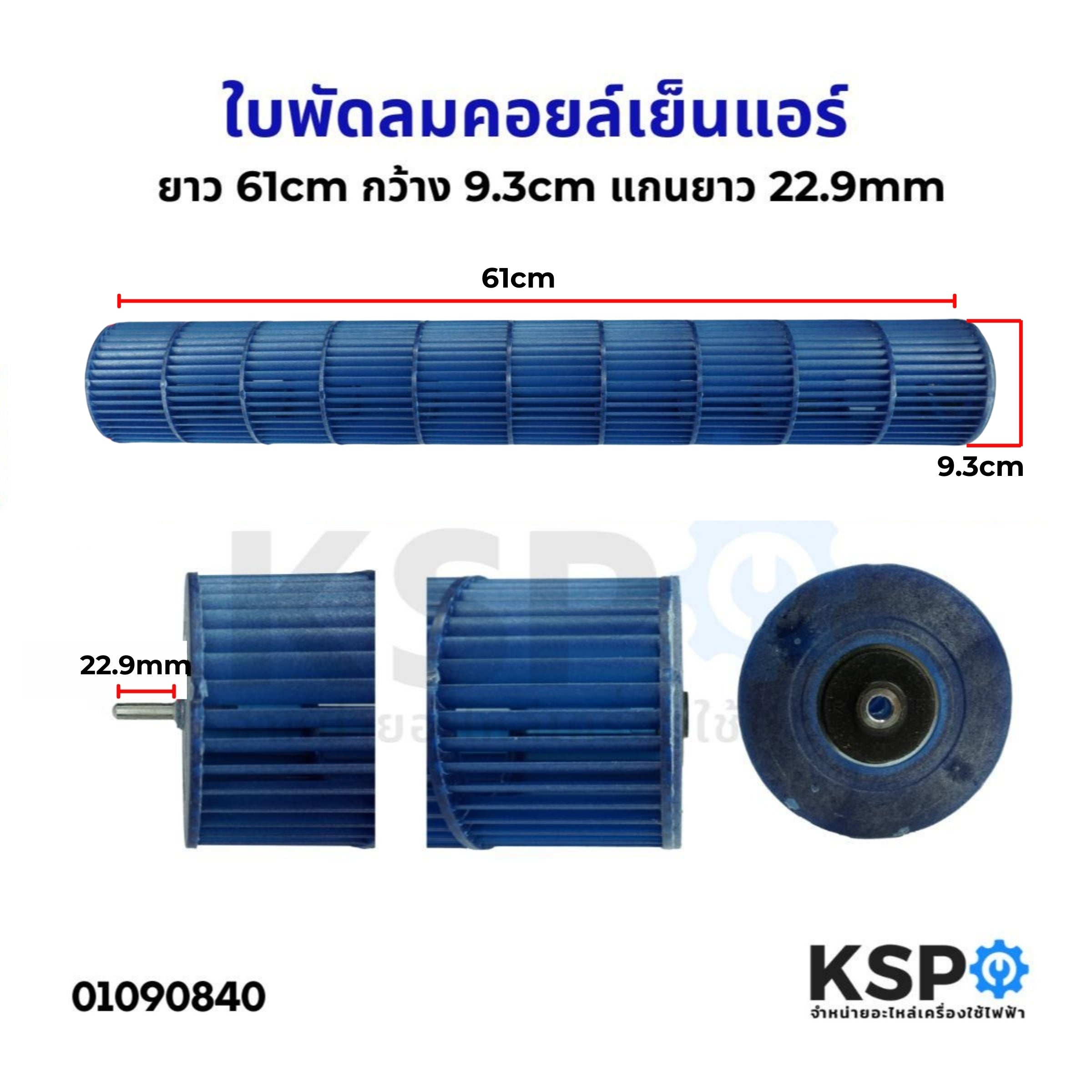 ใบพัดลมคอยล์เย็นแอร์ โพรงกระรอก โบเวอร์แอร์ ยาว 61cm กว้าง 9.3cm แกนยาว 22.9mm ทั่วไป อะไหล่แอร์