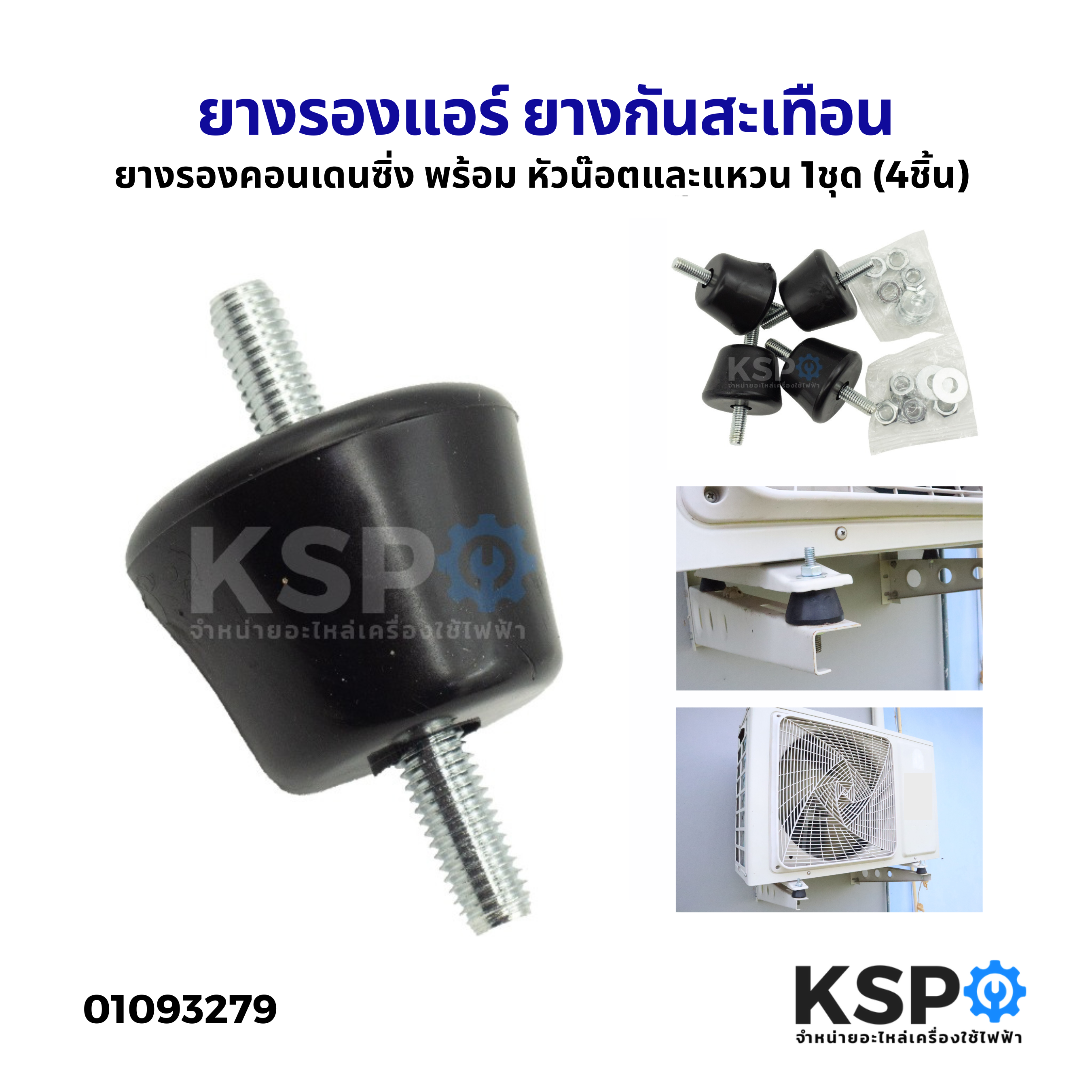 ลูกยางรองคอยร้อนแอร์ พร้อมหัวน็อตและแหวน ใช้สำหรับยึดคอยร้อนของเครื่องปรับอากาศให้มั่นคง ลดแรงสั่นสะเทือนขณะทำงาน