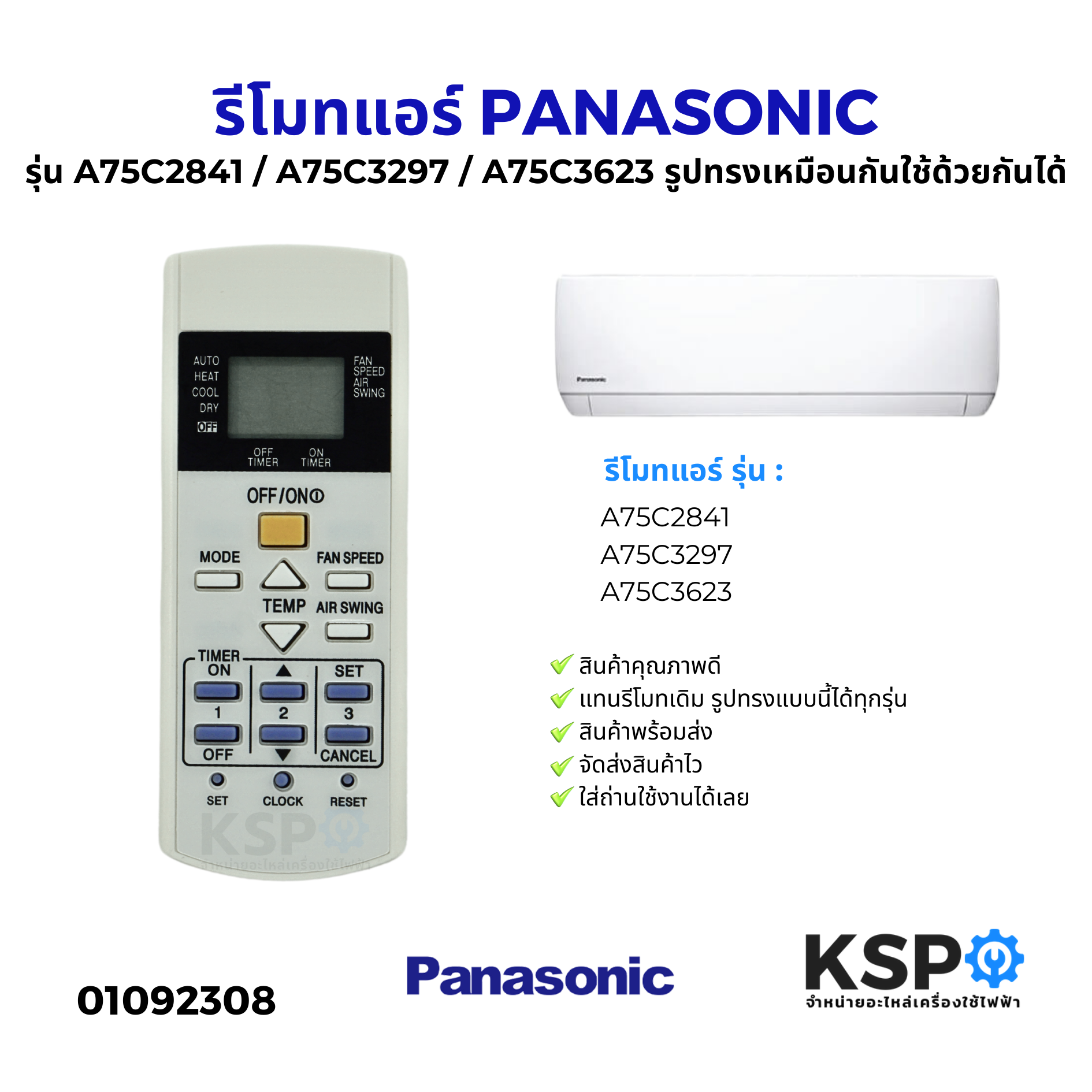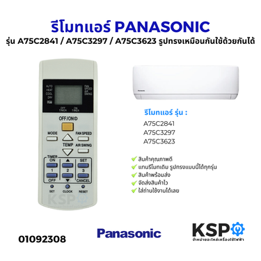 • รีโมทนี้เหมาะสำหรับเครื่องปรับอากาศ PANASONIC ที่ใช้รีโมทรุ่น A75C2841, A75C3297 หรือ A75C3623
