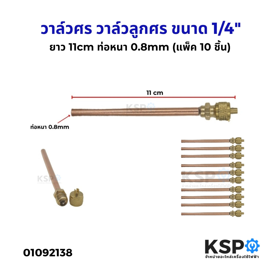 วาล์วศร วาล์วลูกศร 1/4" CT-110 ท่อทองแดง ยาว 11cm ท่อหนา 0.8mm (แพ็ค 10 ชิ้น) ศรน้ำยา่แอร์ ศรตู้เย็น อะไหล่แอร