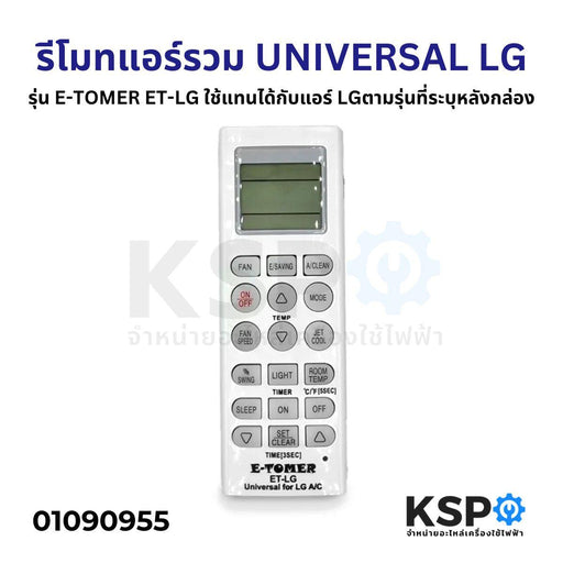 รีโมทแอร์รวม UNIVERSAL LG รุ่น E-TOMER ET-LG ใช้แทนได้กับแอร์ LG ตามรุ่นที่ระบุหลังกล่อง อะไหล่ทดแทนที่จำเป็นสำหรับการซ่อมแซมเครื่องปรับอากาศ LG ที...