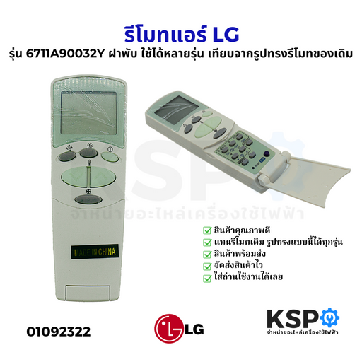 รีโมทแอร์ LG แอลจี รุ่น 6711A90032Y ฝาพับ ใช้ได้หลายรุ่น เทียบจากรูปแบบรีโมทของเดิม อะไหล่แอร์