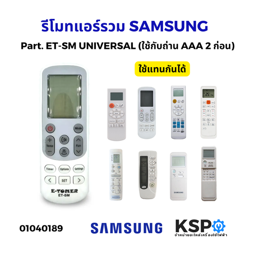รีโมทรวม แอร์ SAMSUNG ซัมซุง Part.  ET-SM ใช้แทนได้กับแอร์ SAMSUNG ตามรุ่นที่ระบุหลังกล่อง อะไหล่ทดแทนที่จำเป็นสำหรับการซ่อมแซมเครื่องปรับอากาศ SAM...