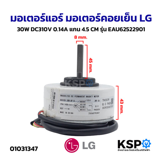มอเตอร์แอร์ มอเตอร์คอยเย็น LG แอลจี DC310V 30W 8P แกนยาว 45mm รุ่น EAU62522901 อะไหล่แอร์