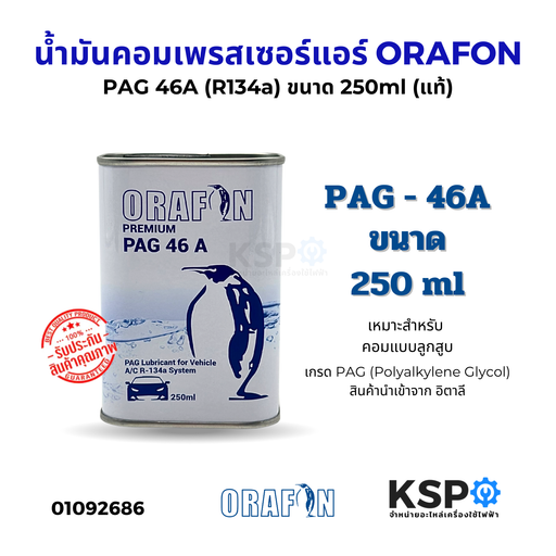 รายละเอียดสินค้า น้ำมันคอมเพรสเซอร์แอร์ ORAFON โอราฟอน รุ่น POE68 ขนาด 1 ลิตร น้ำมันคอมเพรสเซอร์ชนิดสังเคราะห์ (Synthetic Compressor Oil) ผลิตจาก P...