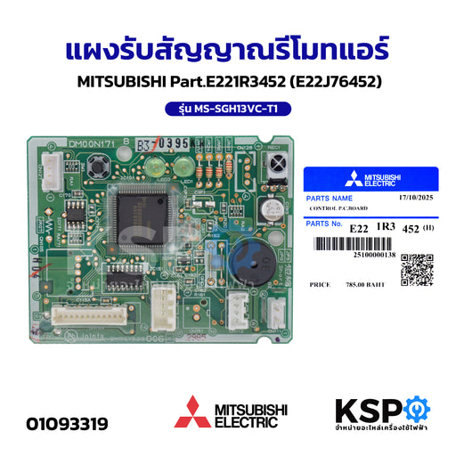 แผงรับสัญญาณรีโมทแอร์ MITSUBISHI มิตซูบิชิ Part.E221R3452 (E22J76452) รุ่น MS-SGH13VC-T1 อะไหล่แอร์
