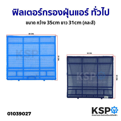 ฟิลเตอร์กรองฝุ่นแอร์ ฟิลเตอร์แอร์ แผ่นกรองฝุ่น ยี่ห้อทั่วไป ขนาด กว้าง 35cm ยาว 31cm (คละสี) อะไหล่แอร์