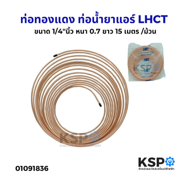 ท่อทองแดง ท่อน้ำยาแอร์ LHCT ขนาด 1/4"นิ้ว หนา 0.7 ยาว 15 เมตร ชนิดม้วนอย่างหนา อะไหล่แอร์