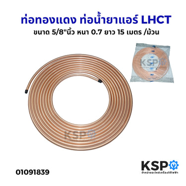 ท่อทองแดง ท่อน้ำยาแอร์ LHCT ขนาด 5/8"นิ้ว หนา 0.7 ยาว 15 เมตร ชนิดม้วนอย่างหนา อะไหล่แอร์