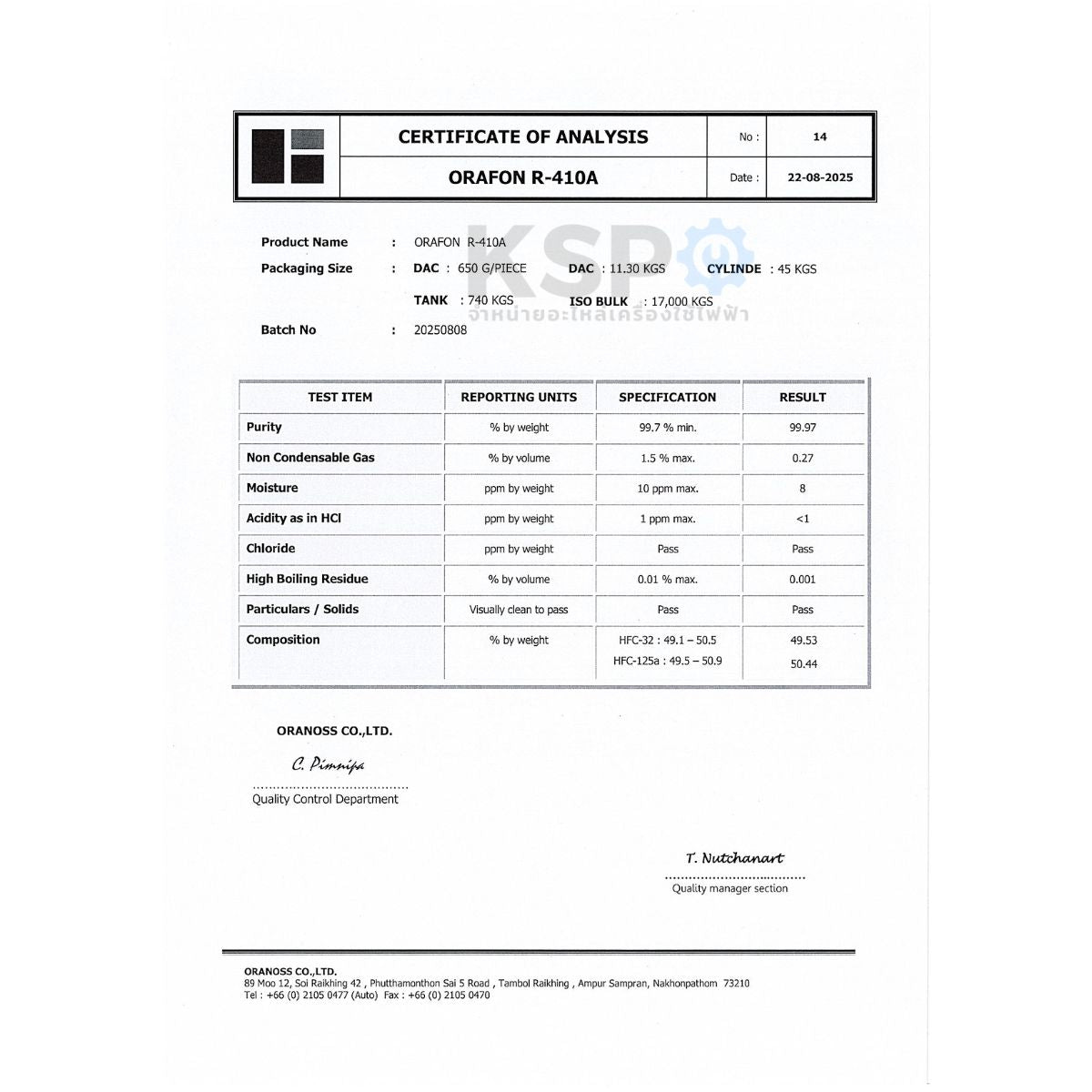 น้ำยาแอร์ R410a ORAFON โอราฟอน สารทำความเย็น ขนาดบรรจุ 2.8kg อะไหล่แอร์