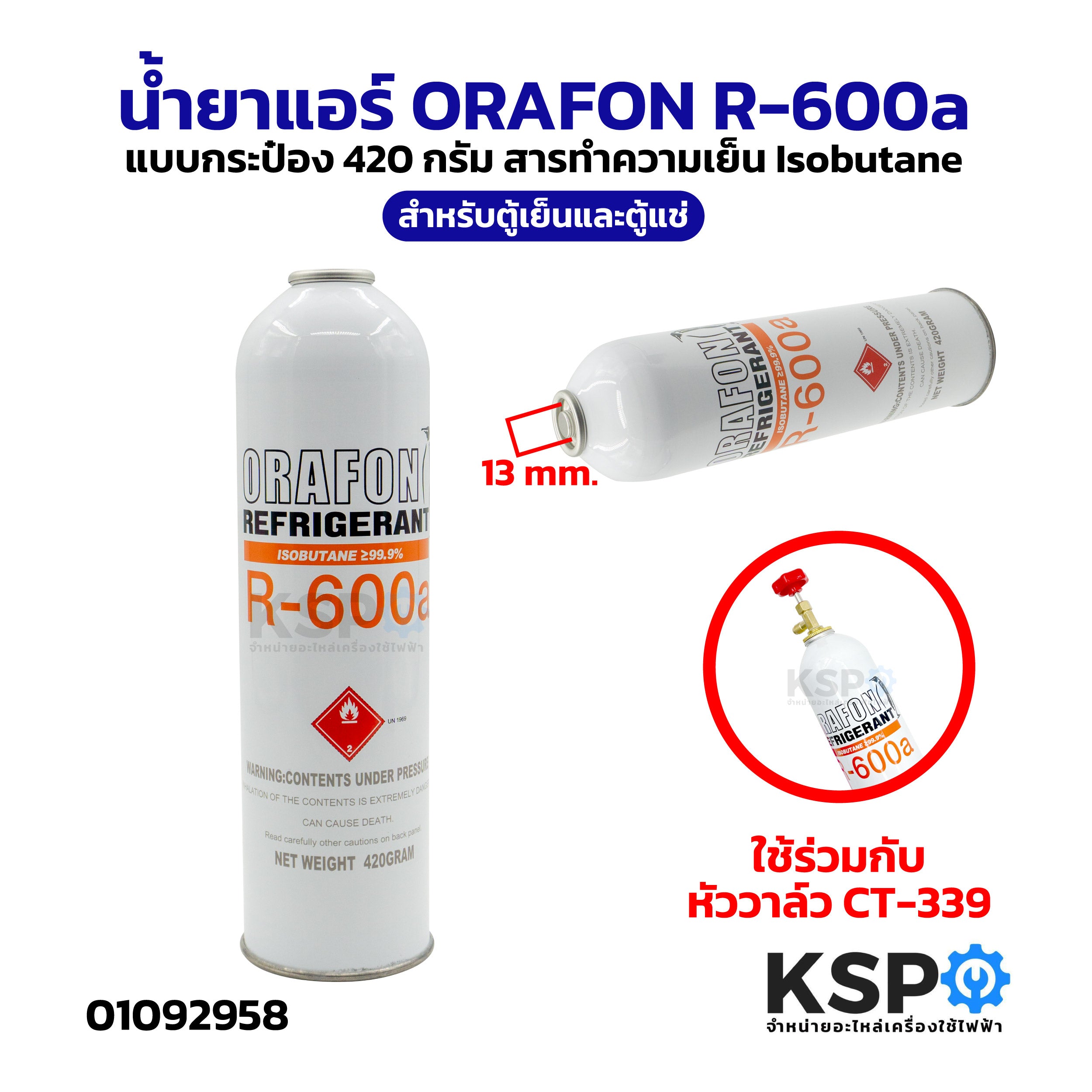น้ำยาแอร์ ORAFON R-600a แบบกระป๋อง 420 กรัม สารทำความเย็น Isobutane สำหรับตู้เย็นและตู้แช่ อะไหล่แอร์