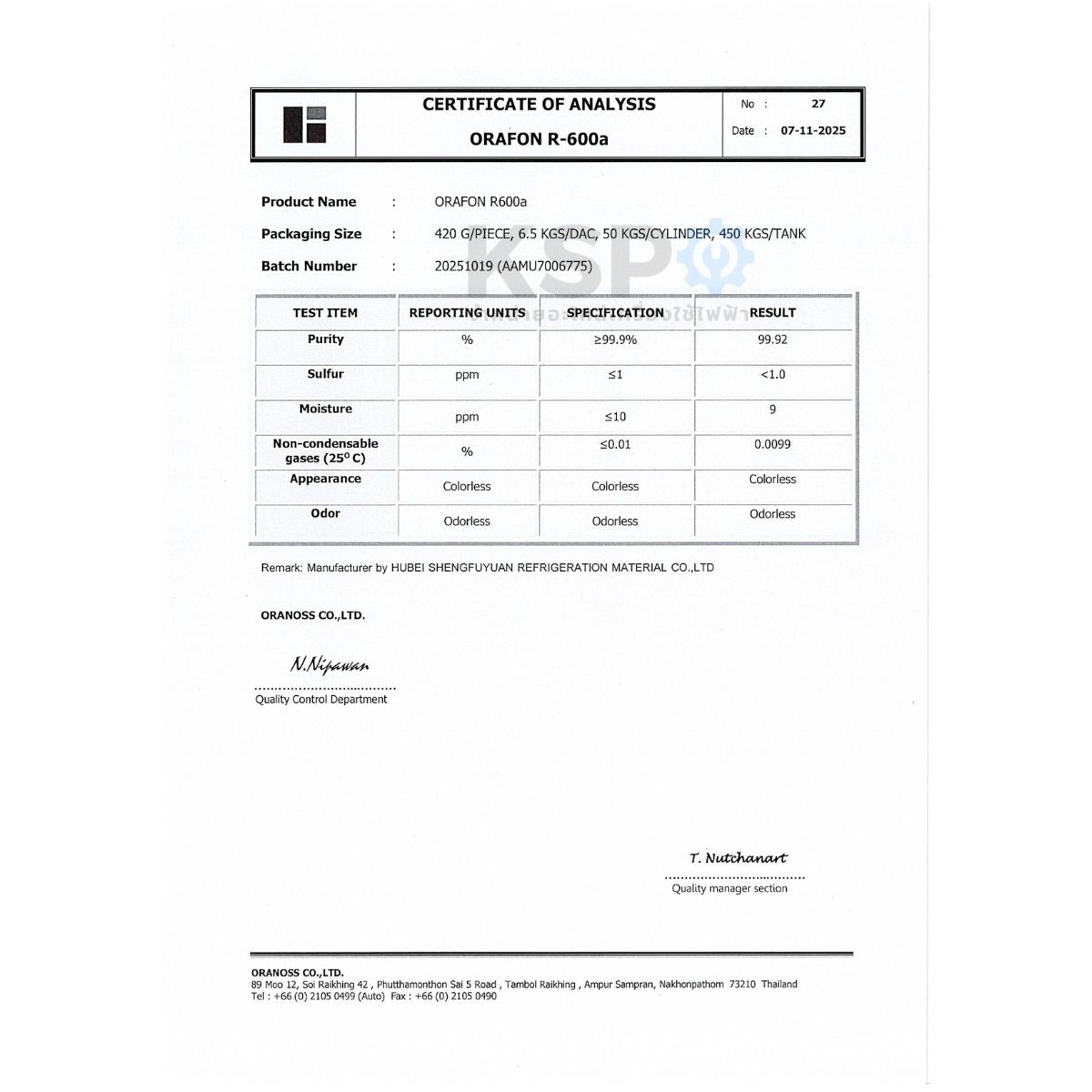 - ชนิดสินค้า: สารทำความเย็น R-600a