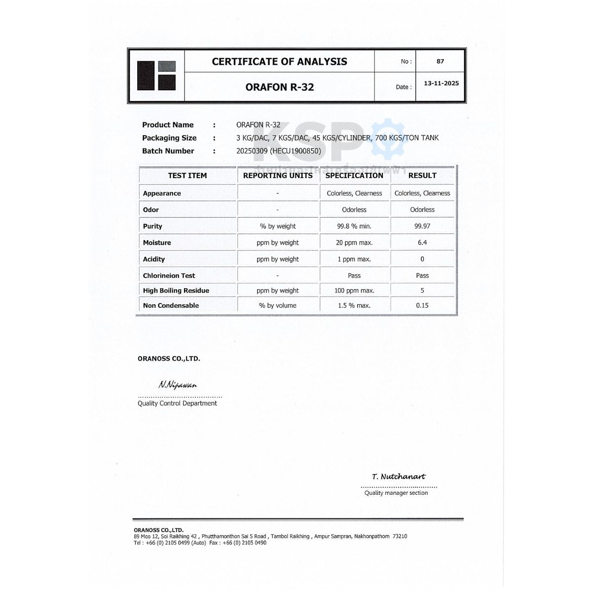 - ใช้เติมในระบบทำความเย็นของเครื่องปรับอากาศที่รองรับน้ำยา R-32