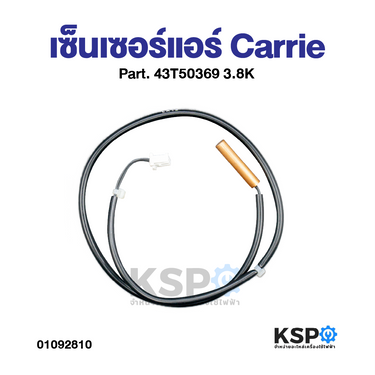เซ็นเซอร์แอร์ Carrier (แคเรียร์) รหัส Part 43T50369 ค่าความต้านทาน 3.8K เป็นอะไหล่สำคัญในระบบปรับอากาศ ใช้ตรวจวัดอุณหภูมิภายในตัวเครื่อง เพื่อควบคุมการทำงานของระบบให้แม่นยำ เหมาะสำหรับใช้เปลี่ยนแทนเซ็นเซอร์เดิมที่เสื่อมหรือเสีย ใช้งานได้กับเครื่องปรับอากาศหลายรุ่นของ Carrier