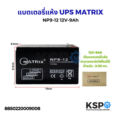 แบตเตอรี่แห้ง UPS MATRIX NP9-12 12V-9Ah แบตเตอรี่เครื่องสำรองไฟ แบตเตอรี่
