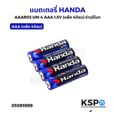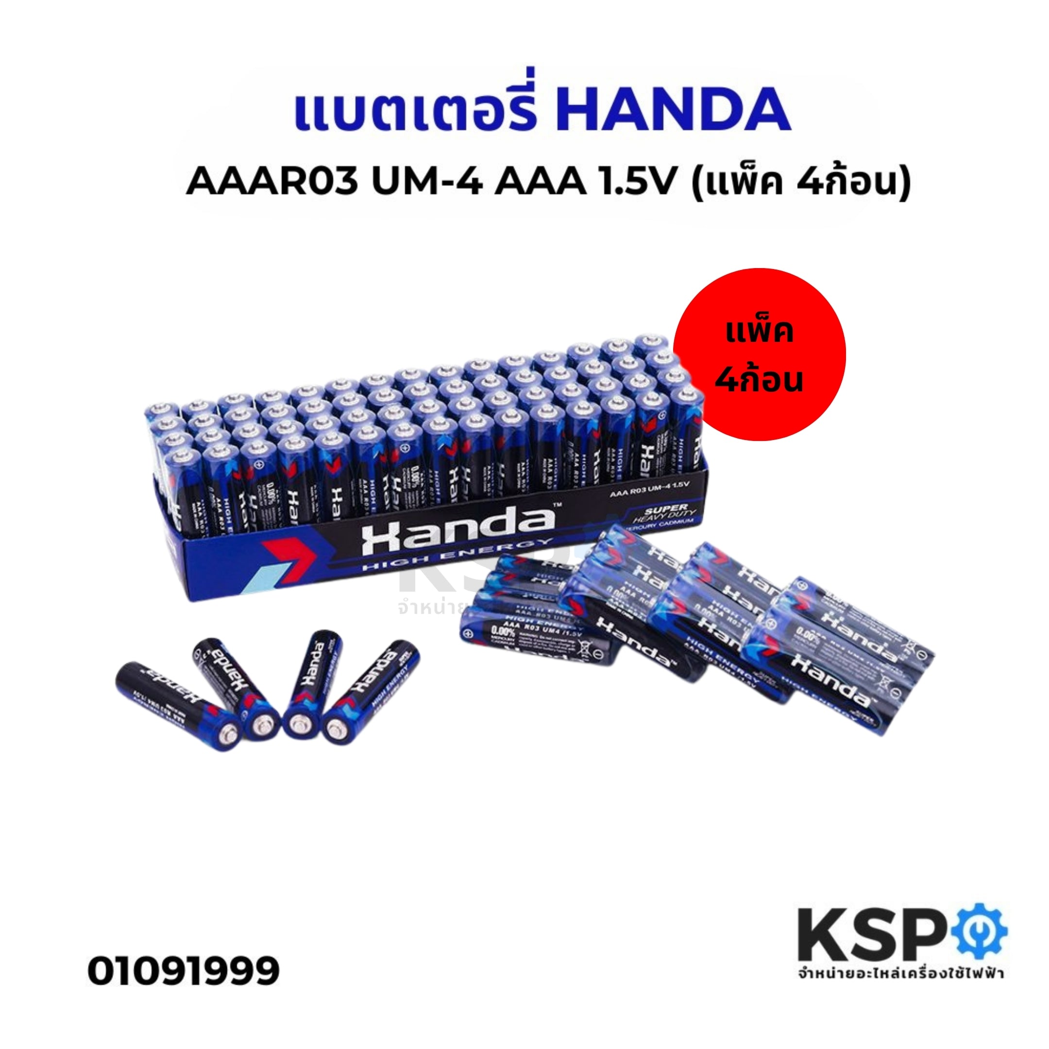 แบตเตอรี่ HANDA AAAR03 UM-4 AAA 1.5V (แพ็ค 4ก้อน) ถ่านรีโมท เหมาะสำหรับรีโมท อุปกรณ์อิเล็คทรอนิกส์ต่างๆ แบตเตอรี่