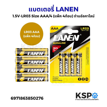 แบตเตอรี่อัลคาไลน์ LANEN 1.5V-LR03 Size AAA/4 (แพ็ค 4ชิ้น) ถ่านอัลคาไลน์ อุปกรณ์แบตเตอรี่