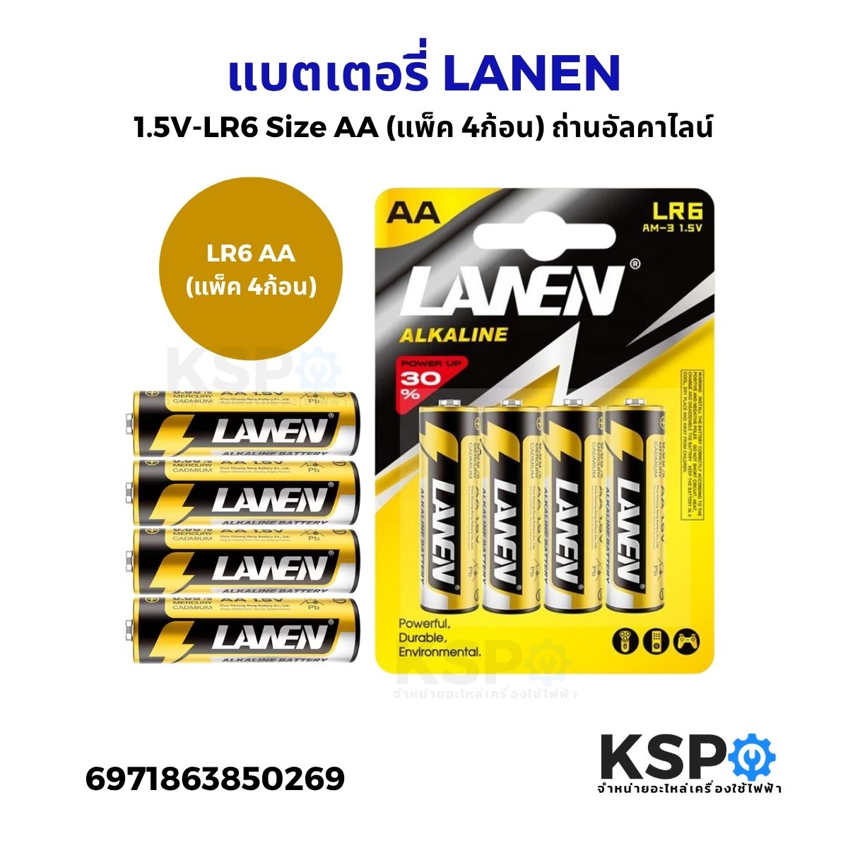 แบตเตอรี่อัลคาไลน์ LANEN 1.5V-LR6 Size AA (แพ็ค 4ชิ้น) ถ่านอัลคาไลน์ อุปกรณ์แบตเตอรี่