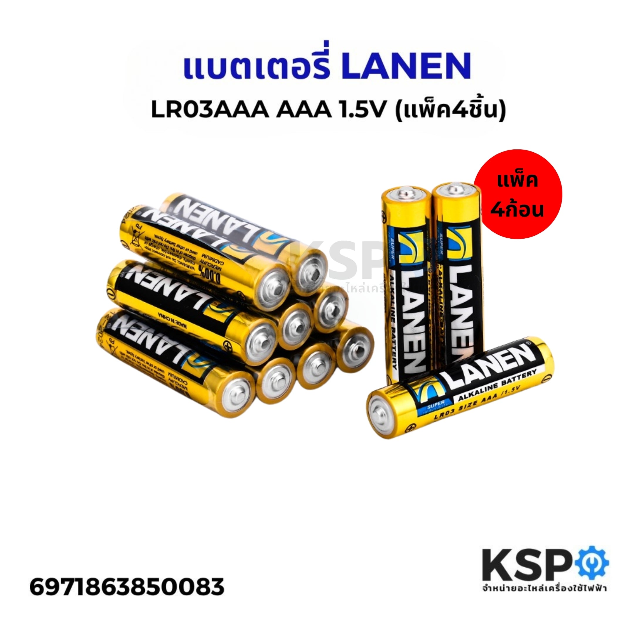 แบตเตอรี่ LANEN LR03AAA AAA 1.5V (แพ็ค4ชิ้น) ถ่านรีโมท เหมาะสำหรับรีโมท อุปกรณ์อิเล็คทรอนิกส์ต่างๆ แบตเตอรี่
