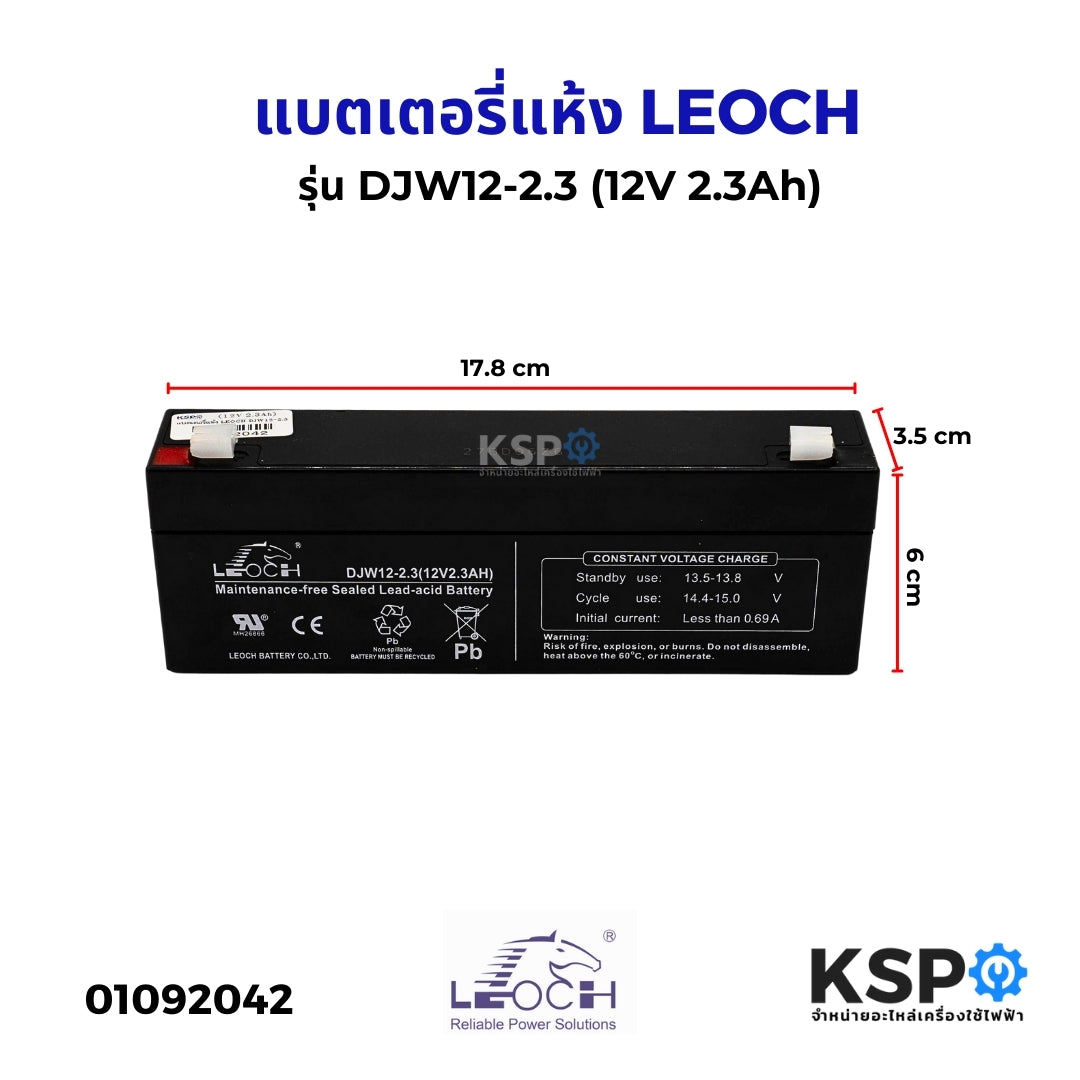 แบตเตอรี่แห้ง LEOCH ลีออช รุ่น DJW12-2.3 (12V 2.3Ah) แบตสำรองไฟ UPS ไฟฉุกเฉิน รถไฟฟ้า ตาชั่ง VRLA Battery แบตเตอรี่