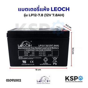 แบตเตอรี่แห้ง LEOCH ลีออช LP12-7.8 (12V 7.8AH) แบต สำรองไฟ UPS ไฟฉุกเฉิน อิเล็กทรอนิกส์ VRLA Battery