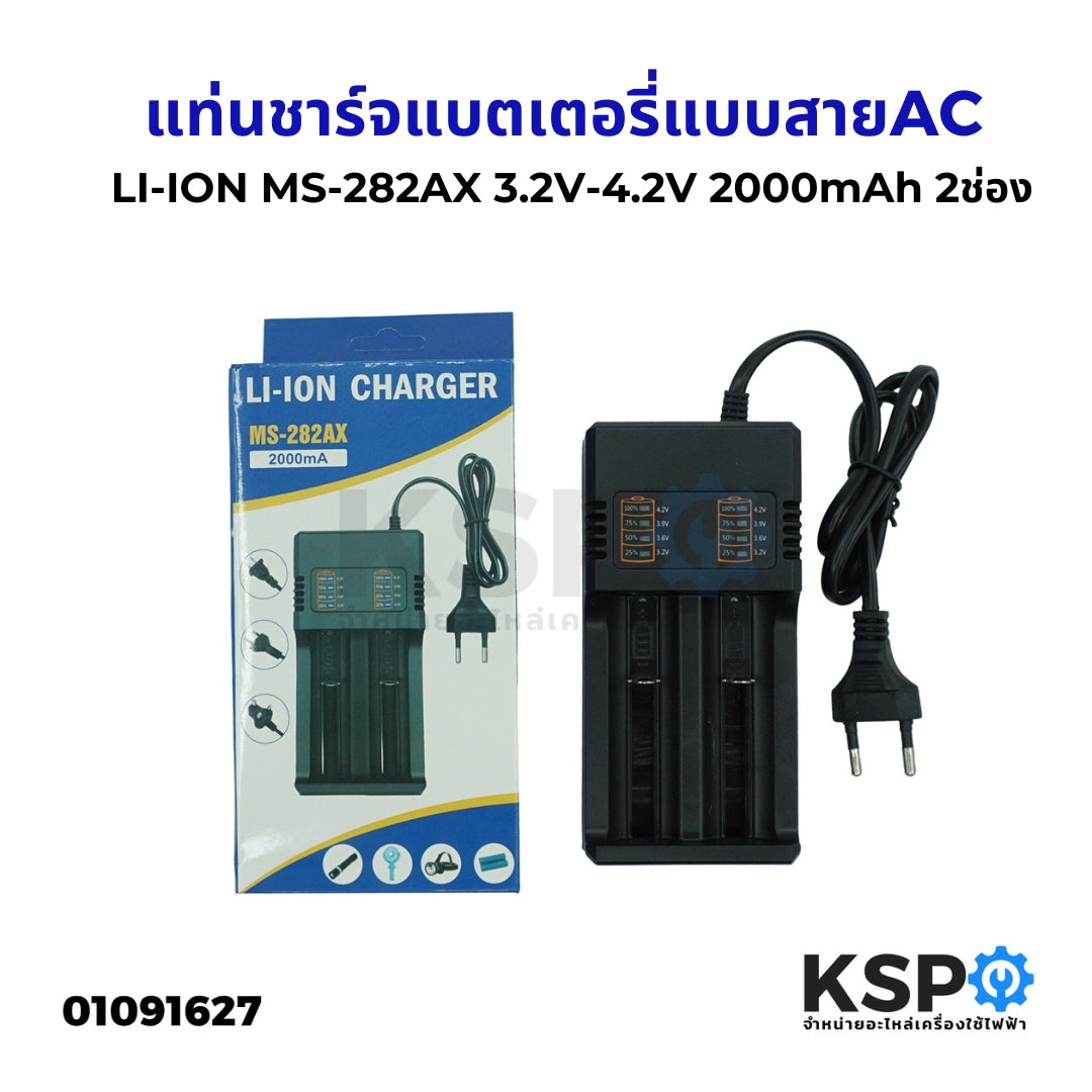 แท่นชาร์จแบตเตอรี่แบบสายAC LI-ION MS-282AX 3.2V-4.2V 2000mAh 2ช่อง สีดำ อุปกรณ์แบตเตอรี่