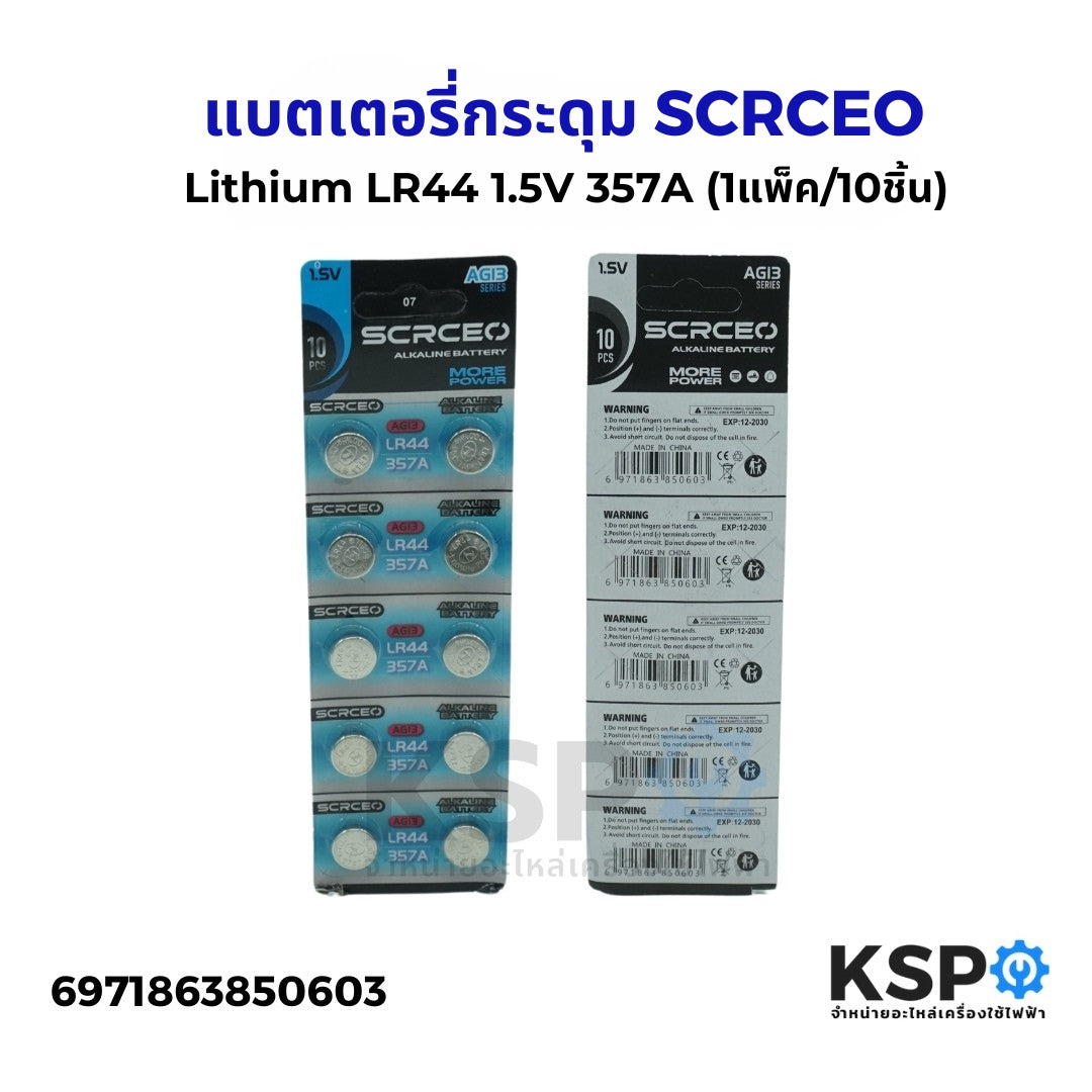 แบตเตอรี่กระดุม SCRCEO Lithium LR44 1.5V 357A (1แพ็ค/10ชิ้น) ถ่านนาฬิกา ถ่านกลม นาฟิกา เครื่องคิดเลข อุปกรณ์แบตเตอรี่
