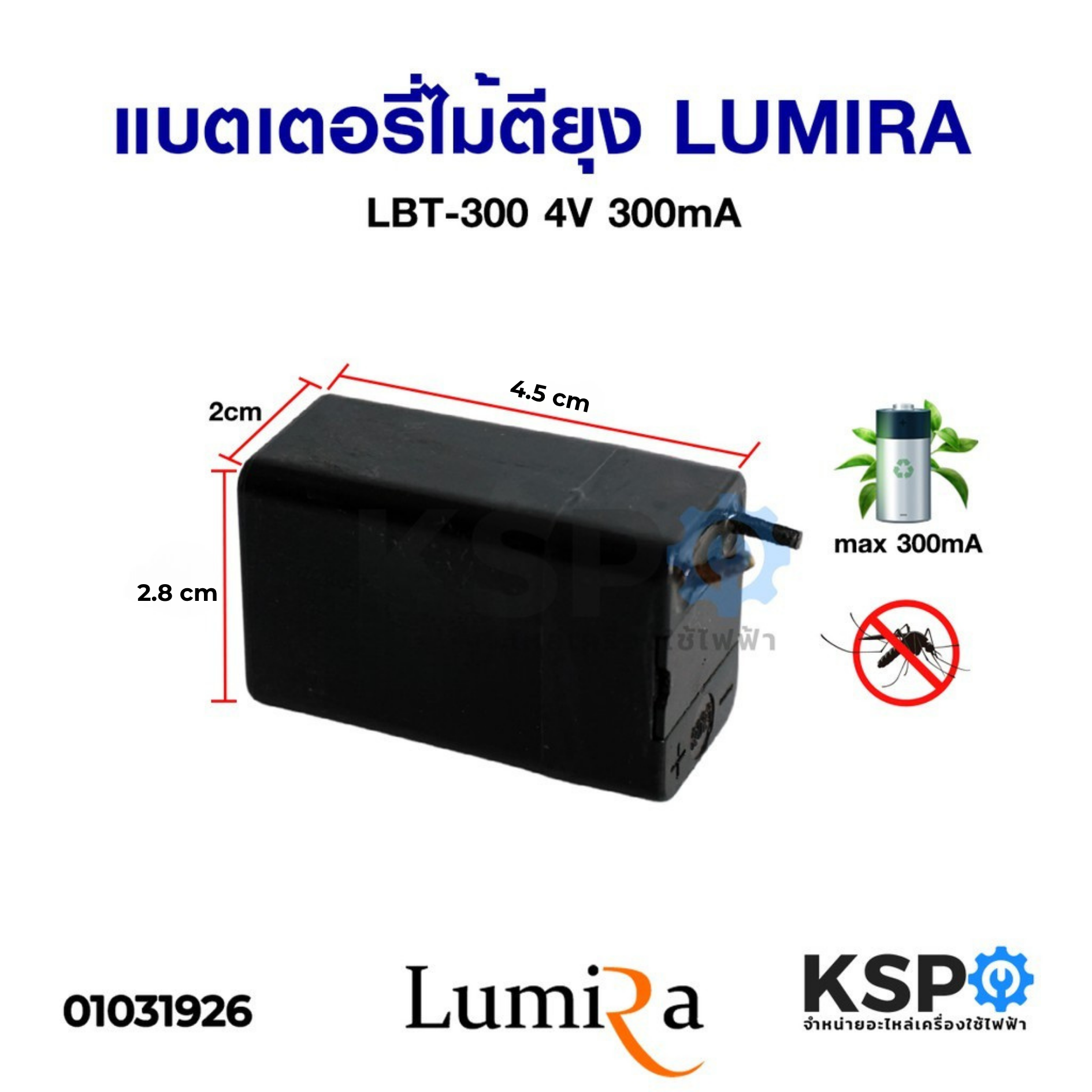 แบตเตอรี่ไม้ตียุง 4V 300mA ถ่านไม้ตียุง อะไหล่ไม้ตียุง
