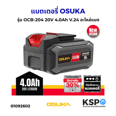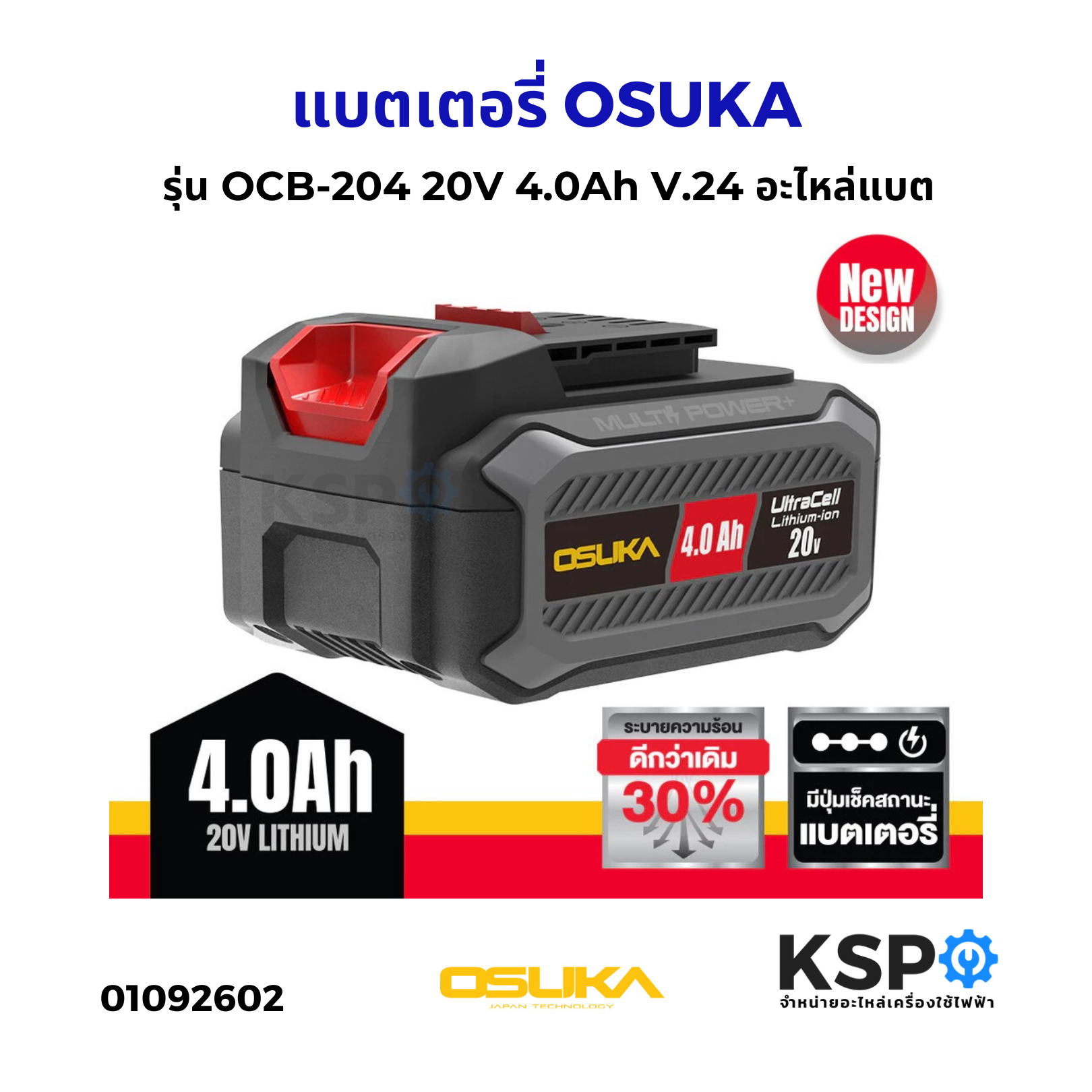 แบตเตอรี่ ก้อนแบต OSUKA รุ่น OCB-204 20V 4.0Ah V.24 อะไหล่แบต (แท้) เครื่องมือช่าง