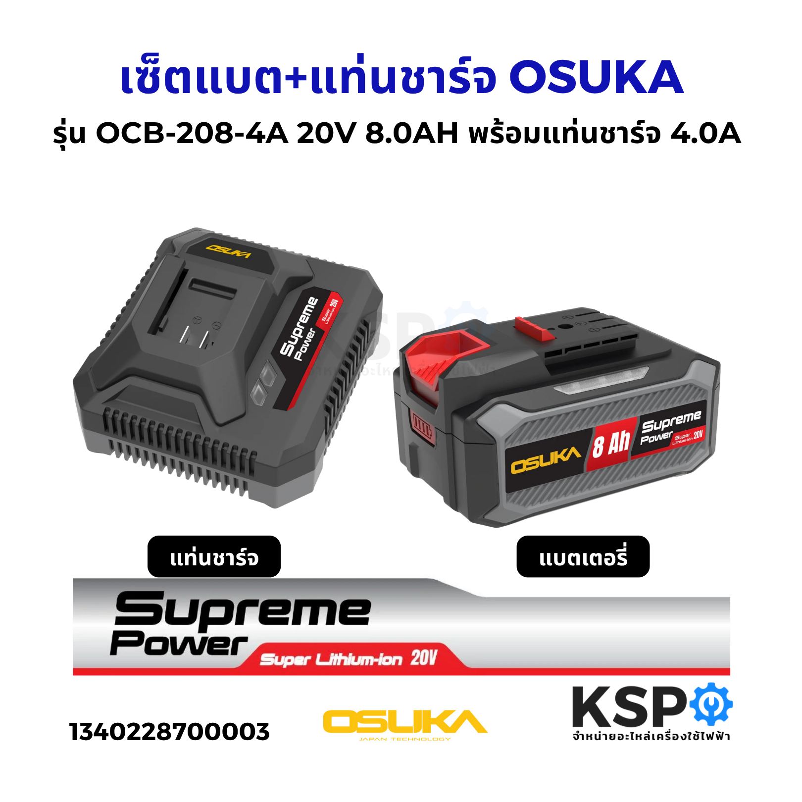 ชุดแบตเตอรี่และแท่นชาร์จ OSUKA รุ่น OCB-208-4A | 20V 8.0Ah + 4.0A Fast Charger
