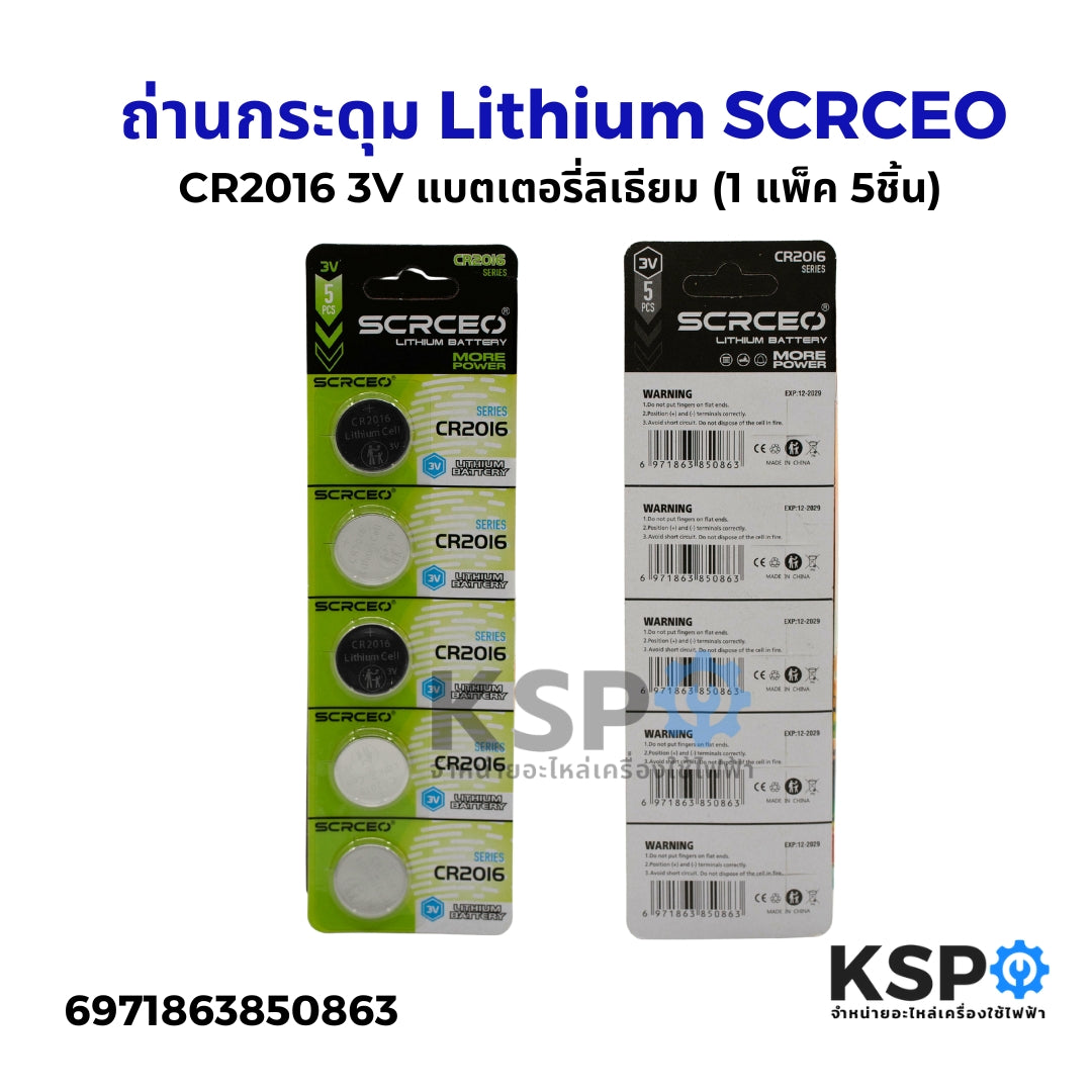 ถ่านกระดุม Lithium CR2016 3V SCRCEO (1แพ็ค5ชิ้น) แบตเตอรี่ลิเธียม อุปกรณ์แบตเตอรี่