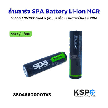 แบตเตอรี่ชาร์จ SPA LI-ION 18650 2600mAh 3.7V แบบหัวนูน 1 ก้อน พร้อมวงจรป้องกัน PCM อุปกรณ์แบตเตอรี่