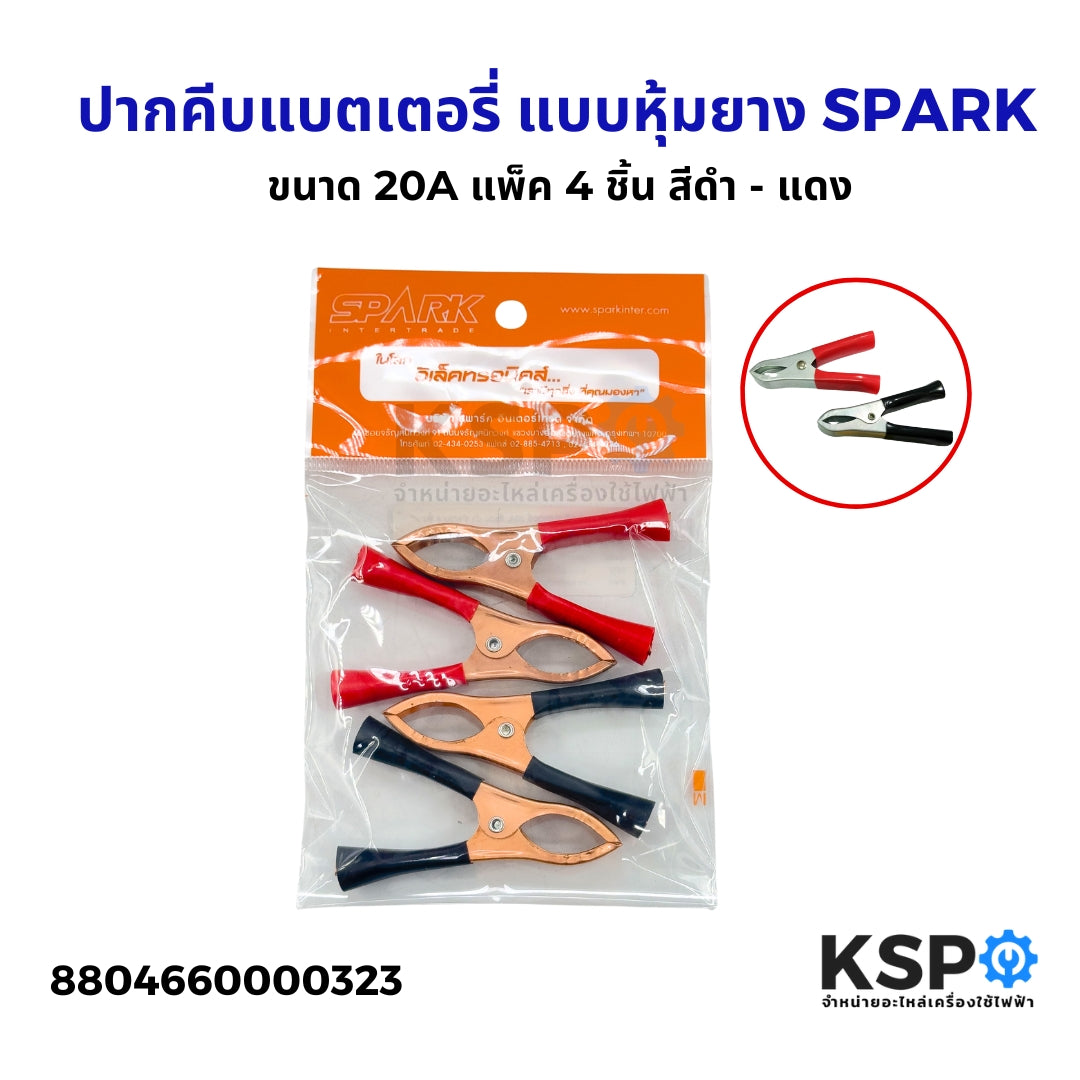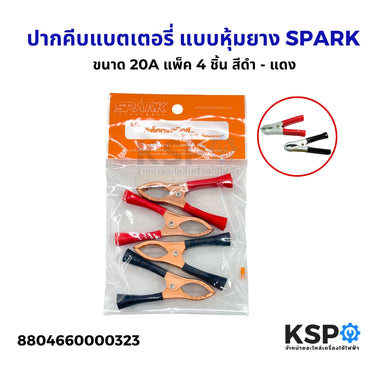ปากคีบแบตเตอรี่ SPARK ขนาด 20A แบบหุ้มยางที่ออกแบบมาเพื่อรองรับการใช้งานที่ทนทานในงานต่อสายพ่วงแบตเตอรี่และงานสตาร์ทเครื่องยนต์ เหมาะสำหรับการพ่วงชาร์จและการเชื่อมต่อแบตเตอรี่ทั่วไป มาพร้อมกับหุ้มยางสีดำ - แดง ป้องกันการช็อตและเพิ่มความปลอดภัยในการใช้งาน