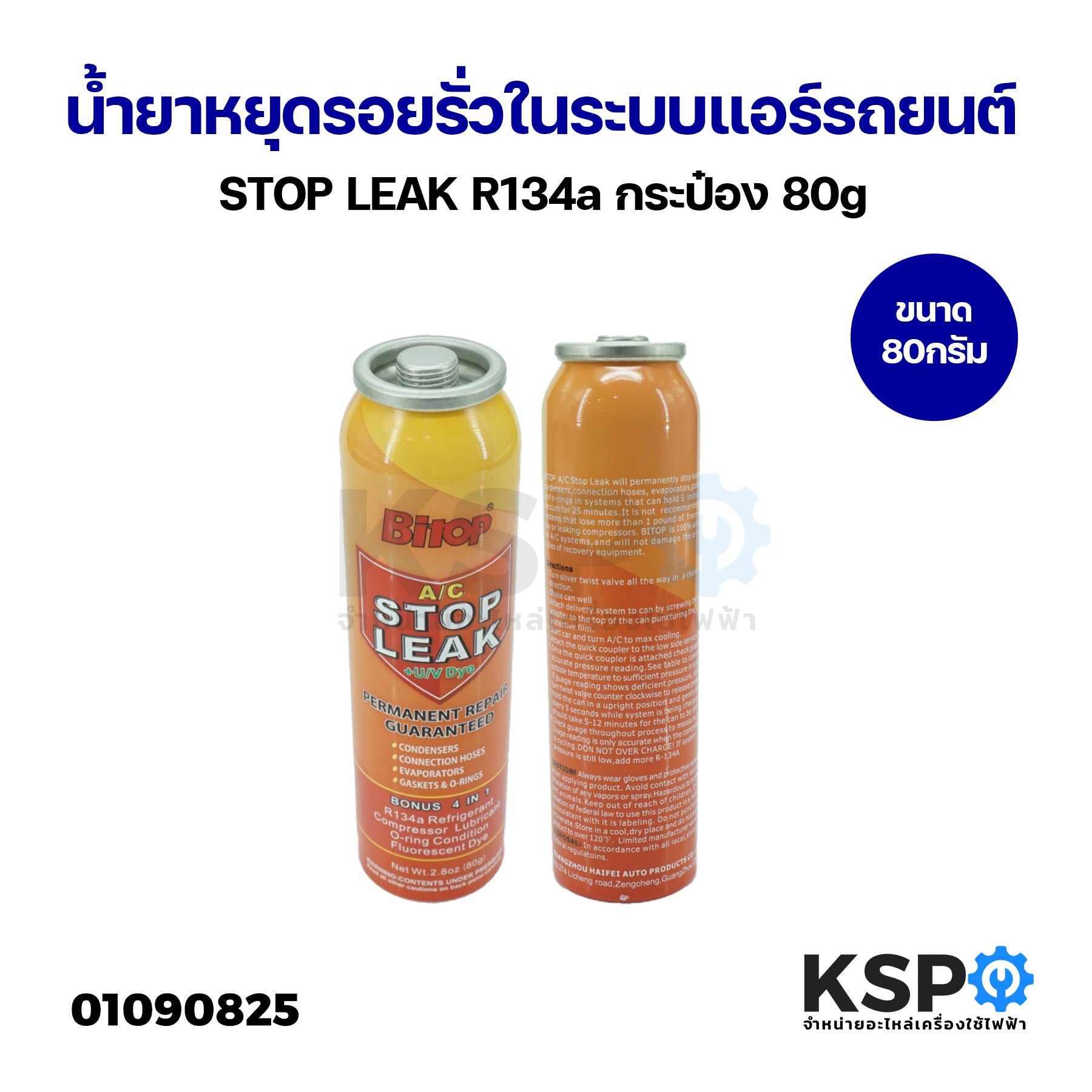น้ำยาหยุดรอยรั่ว A/C Stop Leak R134a กระป๋อง 80g กรัม Bitop น้ำยาเสียบปลั๊กสารทำความเย็นสำหรับน้ำมันทำความเย็น ในระบบแอร์รถยนต์ อะไหล่แอร์