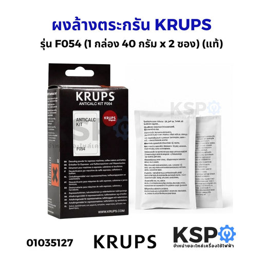 ดูรายละเอียดทั้งหมดผงขจัดคราบตะกรันเครื่องทำกาแฟ KRUPS Descaling powder Anticalc Kit รุ่น F054 (1 กล่อง 40 กรัม x 2 ซอง) (แท้) อะไหล่เครื่องชงกาแฟ