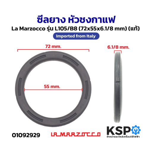 ซีลยางหัวชงกาแฟ La Marzocco รุ่น L105/B8 ขนาด 72x55x6.1/8 mm (แท้) นำเข้าจากอิตาลี ใช้สำหรับเปลี่ยนซีลหัวชงที่เสื่อมสภาพ เพื่อป้องกันการรั่วซึมของน...