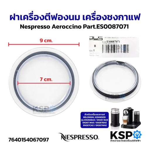 ดูรายละเอียดทั้งหมดฝาเครื่องตีฟองนม เครื่องชงกาแฟ Nespresso Aeroccino Part.ES0087071 สำหรับเครื่องชงกาแฟ DELONGHI, KENWOOD รุ่น EN266BAE / EN267.BAE / EN267.WAE / EN267BAE / EN267CAE / EN267WAE อะไหล่เครื่องชงกาแฟ