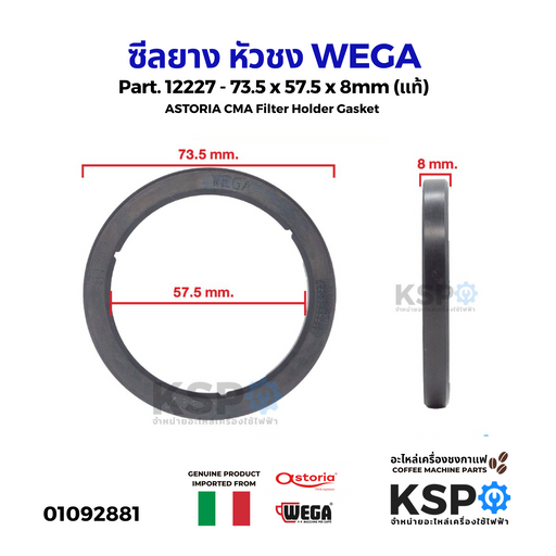 ซีลยางโอริงหัวชง WEGA / Filter Holder Gasketยี่ห้อ : WEGAขนาด : ø 73.5 x 57.5 x 8.5 mmจำนวน : 1 ชิ้นผลิตที่ : อิตาลีวัสดุ : ยางซิลิโคนเกรดเชิงพาณิช...