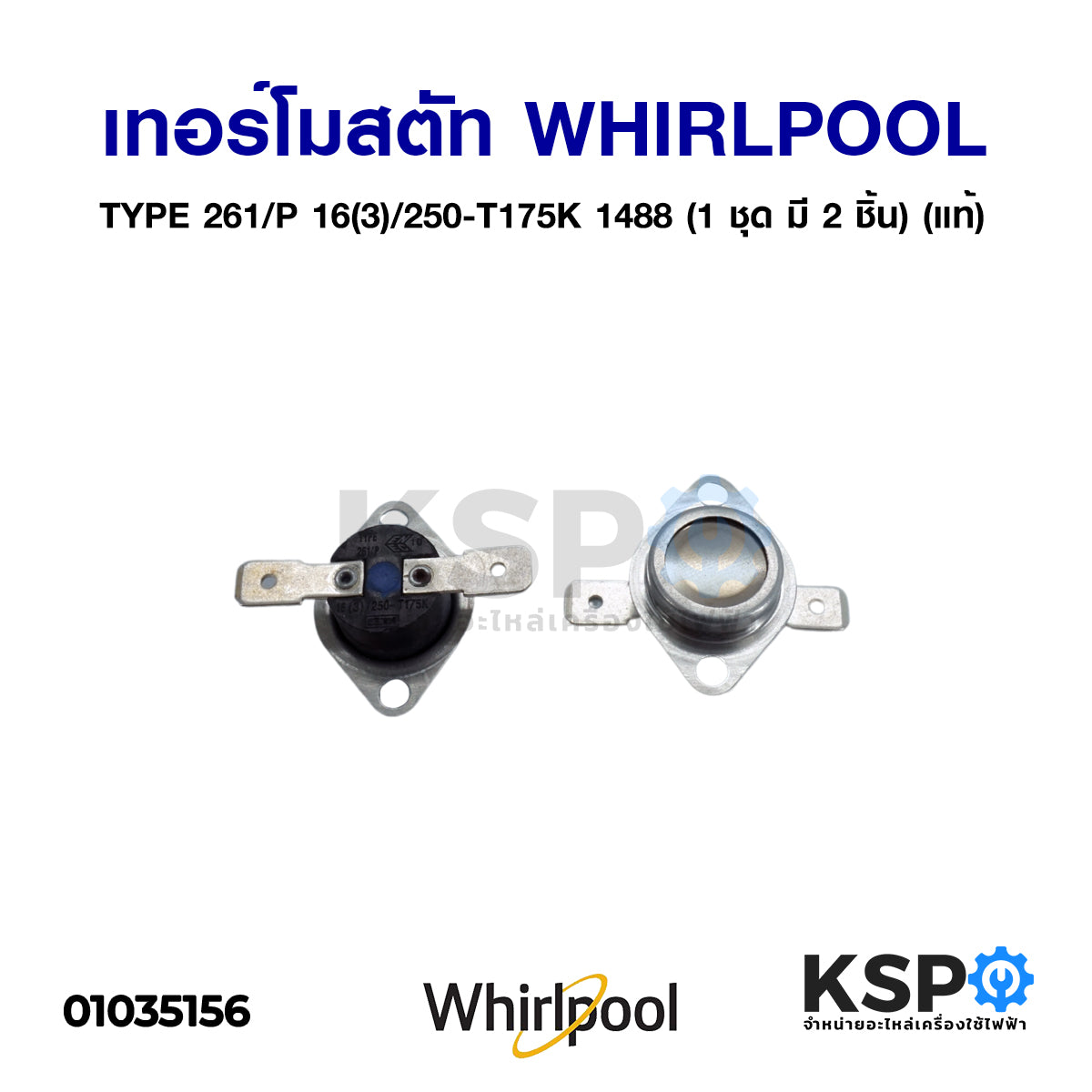 เทอร์โมสตัท Whirlpool / Ariston 261/P 16(3)/250-T175K 1488 (1 ชุด มี 2 ชิ้น) (แท้) อะไหล่เครื่องอบผ้า