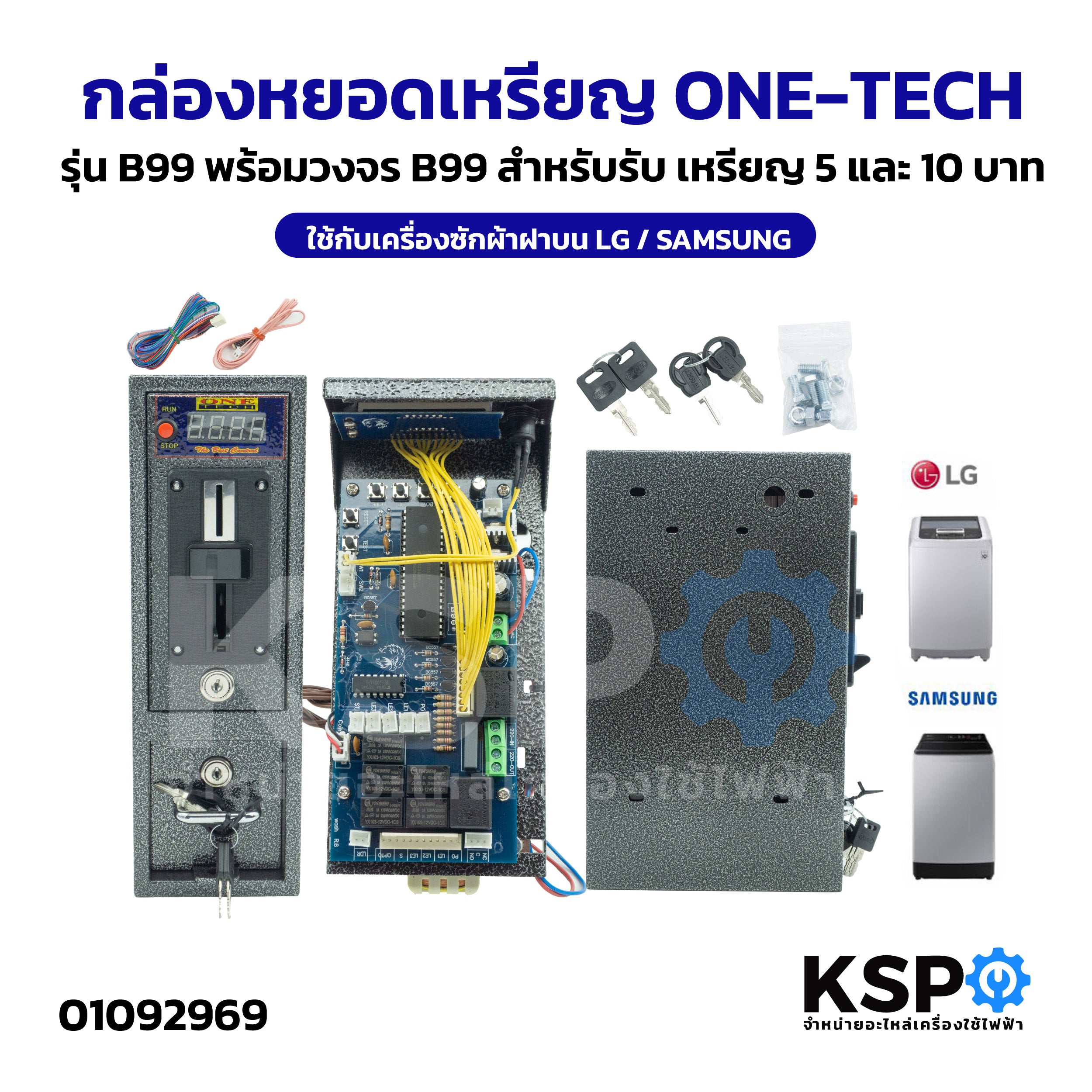 กล่องหยอดเหรียญ ONE‑TECH รุ่น B99 พร้อมวงจร B99 สำหรับรับเหรียญ 5 และ 10 บาท อะไหล่เครื่องซักผ้า
