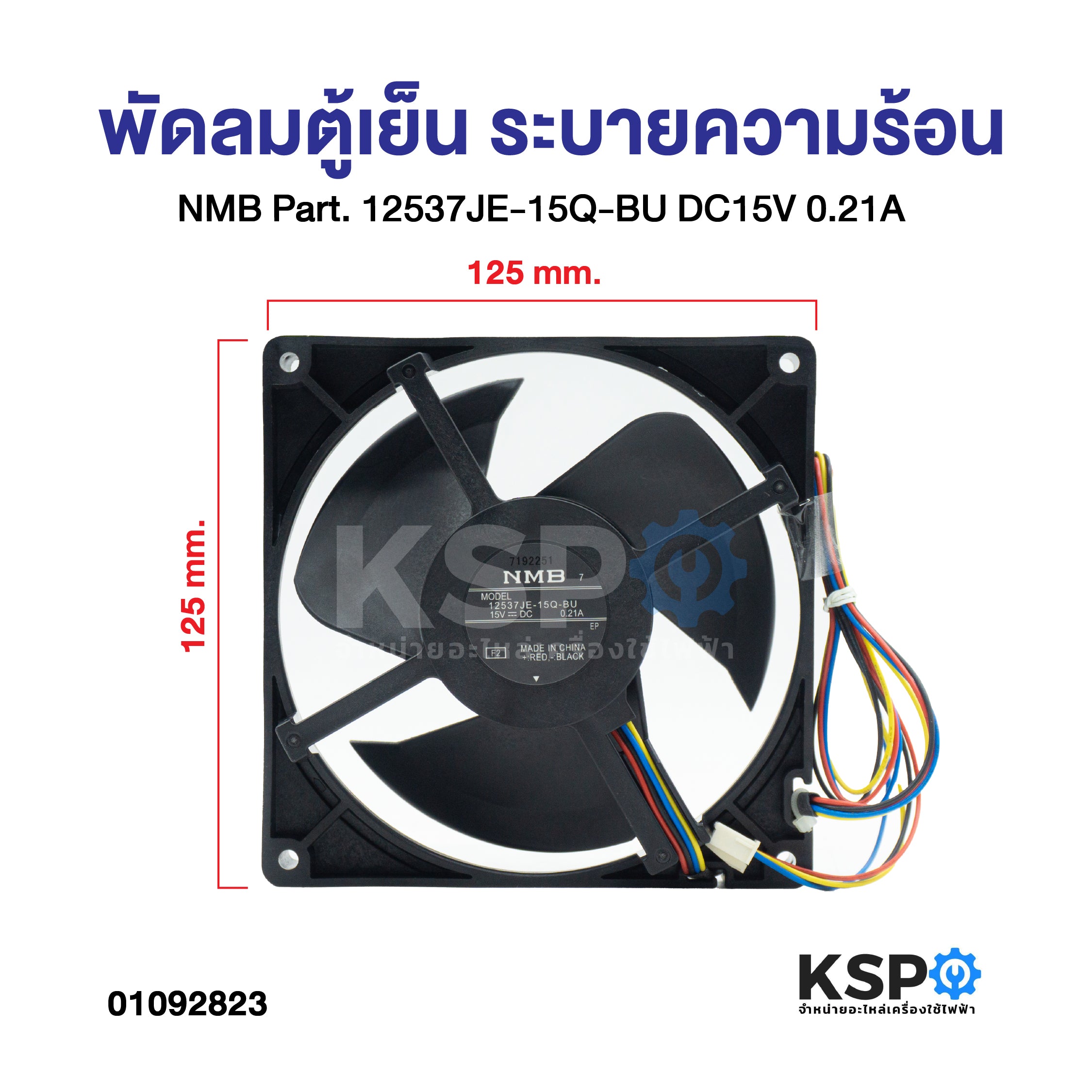พัดลมตู้เย็น พัดลมระบายความร้อน NMB Part. 12537JE-15Q-BU DC15V 0.21A ขนาด 125x125mm อะไหล่ตู้เย็น
