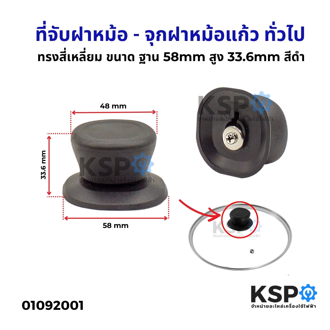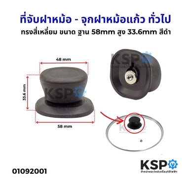ที่จับฝาหม้อ - จุกฝาหม้อแก้ว ทั่วไป ทรงสี่เหลี่ยม ขนาด ฐาน 58mm สูง 33.6mm สีดำ อะไหล่ฝาหม้อแก้ว