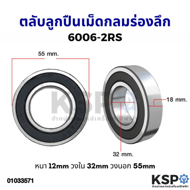 ตลับลูกปืนเม็ดกลมร่องลึก แบริ่งลูกกลิ้งร่องลึก ฝาเหล็ก 6006-2RS หนา 12mm วงใน 32mm วงนอก 55mm
