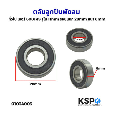 ตลับลูกปืนพัดลม เบอร์ 6001RS รูใน 11mm รอบนอก 28mm หนา 8mm อะไหล่พัดลม