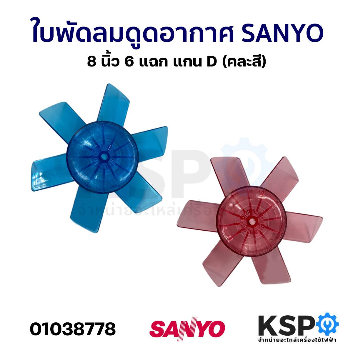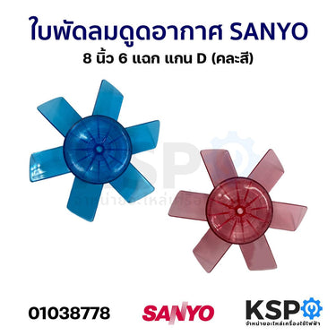 ใบพัดลมดูดอากาศ SANYO ซันโย 8นิ้ว 6แฉก แกน D ใบพัดลม (คละสี) อะไหล่พัดลม