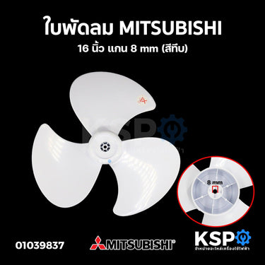 ใบพัดลม MITSUBISHI มิตซูบิชิ 16 นิ้ว แกน 8mm (สีทึบ) อะไหล่พัดลม